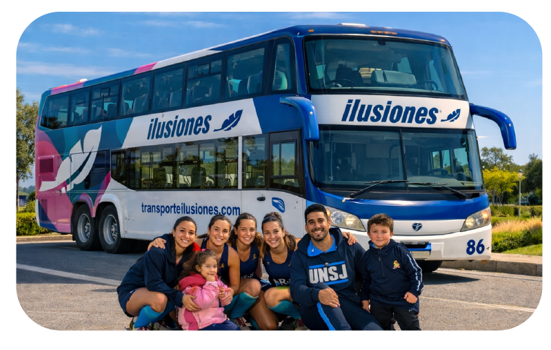 Transporte Ilusiones es una empresa familiar fundada en 1994, especializada en transporte de pasajeros con buses y minibuses pensados para el confort, la seguridad y el entretenimiento a bordo. Con base operativa en Rosario (Santa Fe), brindamos cobertura en toda la región y países limítrofes, respaldados por más de 30 años de trayectoria y un compromiso constante con la mejora del servicio. Contamos con talleres propios de mantenimiento, revisión técnica, limpieza y preparación de servicios, con personal especializado, lo que nos permite asegurar calidad y confiabilidad en cada salida. Trabajamos con clientes particulares, instituciones, clubes, agencias, colegios y empresas, ofreciendo traslados para viajes especiales y turismo, así como también para eventos, congresos, ferias, reuniones corporativas y recorridos de larga distancia. Además, incorporamos entretenimiento a bordo con sistemas multimedia, Playstation, karaoke y conectividad, para que cada trayecto sea una experiencia.